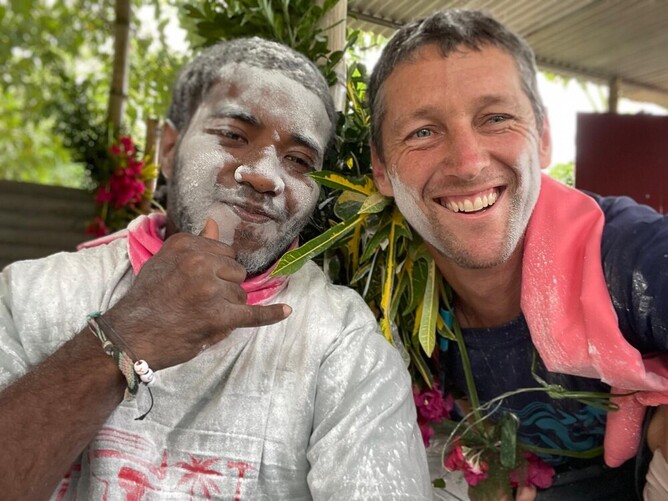 Roy and Fijian Josh getting thanked at Vakanalawa
